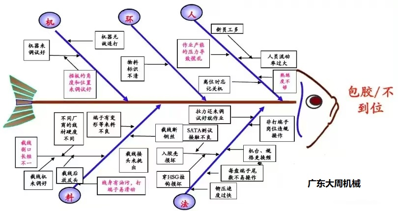 檢查所有端子機擋板,把其中有變形的全部更換,並將擋板檢查項目納入月保養點檢進行。技工調機時擋板位置以垂直約呈90度為基準。建成刀模購回試用驗收經過(guò)品質、工程、製造共同確(què)認樣線簽核製(zhì)度。調(diào)試機器後,須經IPQC確認OK後方可量產(chǎn)作業。非操作員工檢查完後將檢查的線材交回裁線員工,由裁線員工按剝口(kǒu)長度整理,防止放反方向。增加裁(cái)線機加油頻次,減少(shǎo)每次的加油量裁線(xiàn)機四方杆加油增加頻次、減少每次加(jiā)油量:由1次/4H變更為1次/2H,每次加油量由滿(mǎn)杯改為半杯,並修正操作指導書(shū)。裁線剝口量測:不再使用機器本身配置的量具,改用每台機配置一把經校驗後的鋼尺。